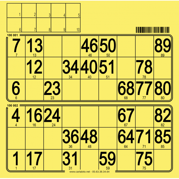 - L'ensemble de nos cartons de loto sont identifiés par un code barre unique. Il permet d'identifier et d'intégrer vos cartons au logiciel interactif LIB' pour une gestion optimisée de vos lotos en salle ou en live