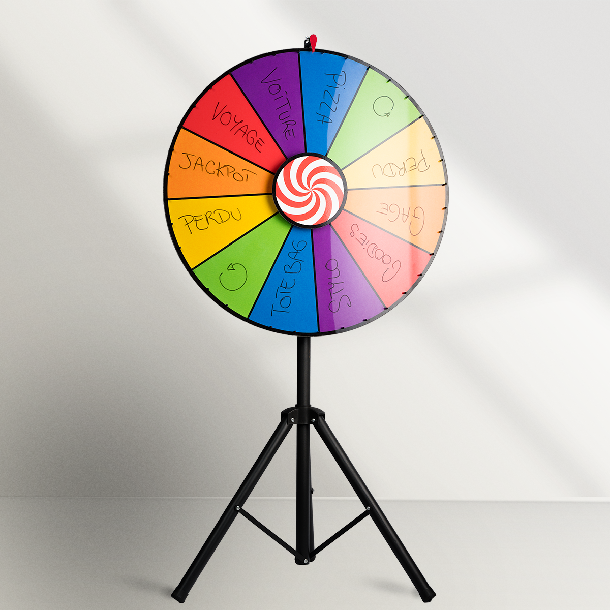 Grâce à sa structure robuste, cette roue de loterie reste stable même lors des manipulations fréquentes. Elle est pensée pour durer plusieurs saisons et supporter tous vos événements.